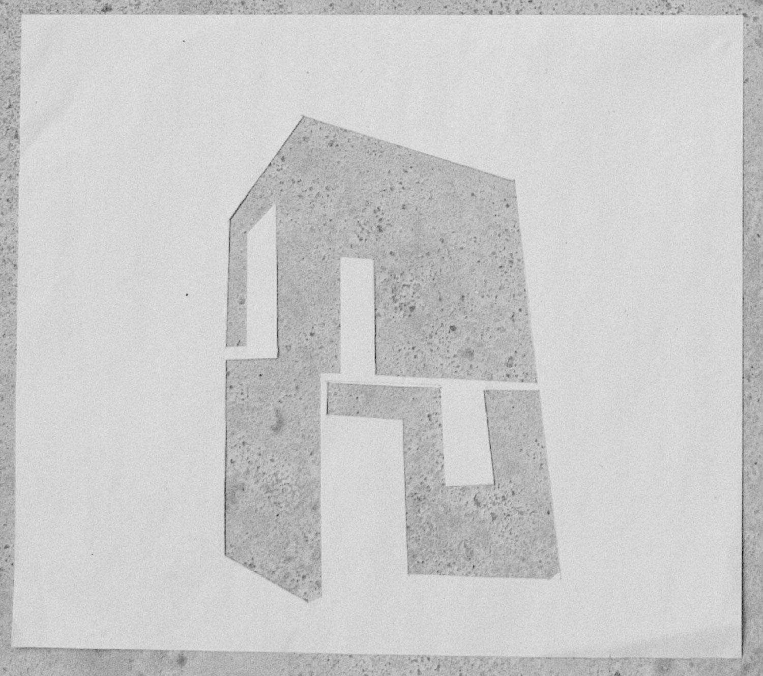 ‚Restructuring Space #3’, 2011; 16cm x 21cm /paper collage. Work in Progress. Sketches for real size paper installations on abandoned houses.